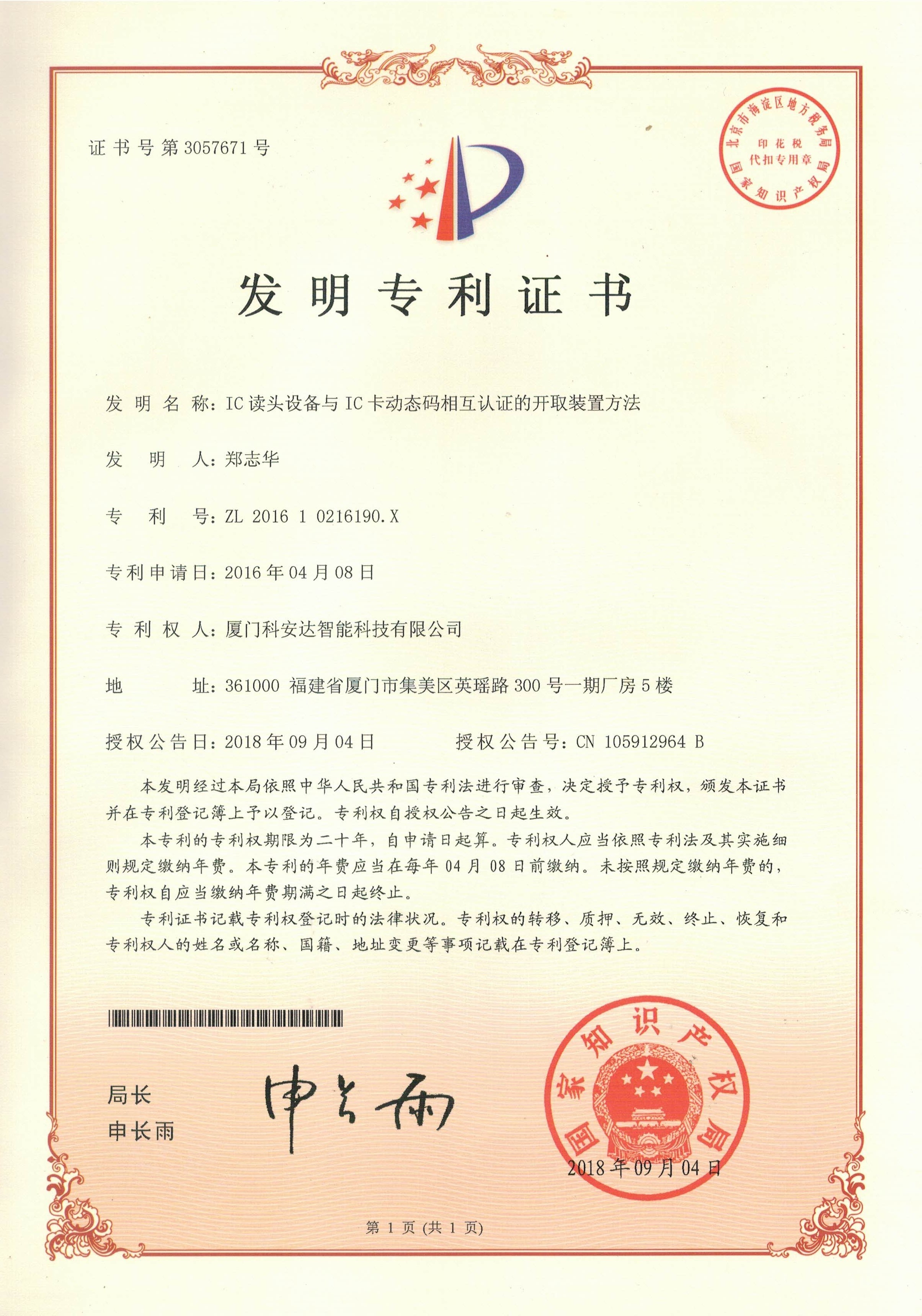 防復制發明專利證書